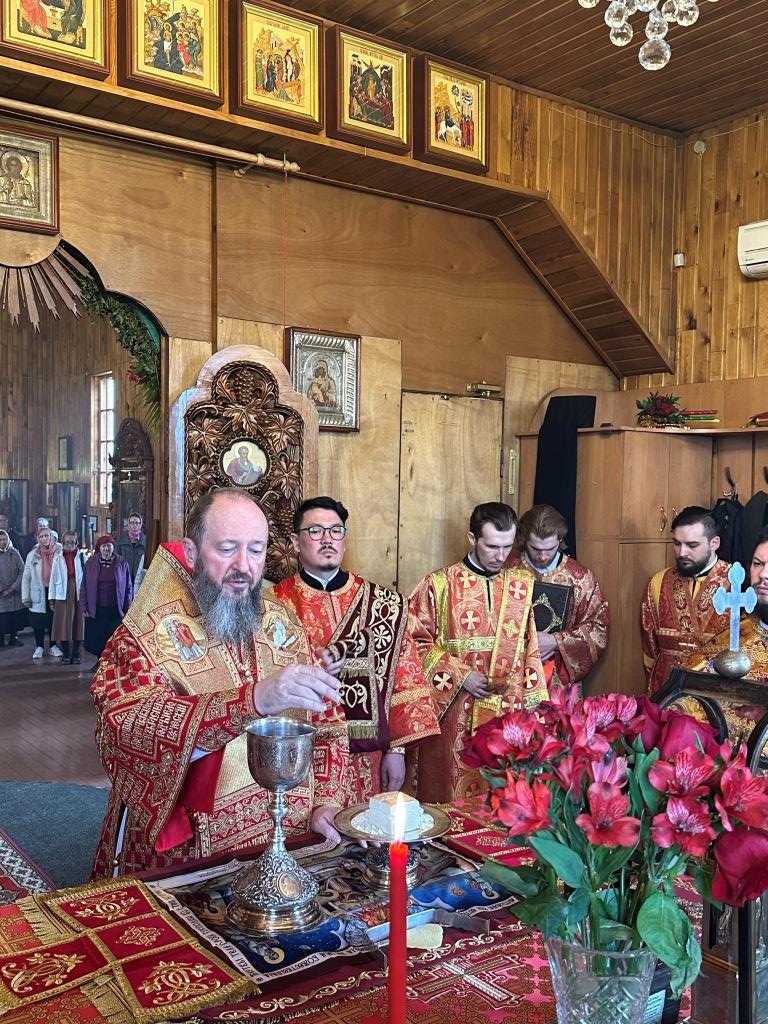 13 апреля 2026 года, Понедельник Светлой седмицы. Память святителя Иннокентия, митрополита Московского.В понедельник Светлой седмицы Высокопреосвященнейший архиепископ Амфилохий посетил Свято-Покровский собор города Усть-Каменогорска, где совершил Божественную Литургию святителя Иоанна Златоуста пасхальным чином. Архипастырю сослужили: благочинный Усть-Каменогорского церковного округа, настоятель Покровского храма иеромонах Силуан (Магилев), ключарь Андереевского собора иеромонах Никодим (Авдеев), ключарь Покровского храма иерей Иоанн Толмачев; протодиакон Александр Якушев, протодиакон Андрей Дудник, секретарь епархии диакон Илия Кван, диакон Кирилл Нарушин.За пасхальным богослужением молились прихожане и паломники Покровского храма. Песнопения Пасхи Христовой и Божественной Литургии исполнял хор под управлением регента А. Король. Перед причастием было оглашено Пасхальное послание Святейшего Патриарха Московского и всея Руси Кирилла.После заамвонной молитвы было совершено славление Христу Воскресшему. В завершение праздничного богослужения Высокопреосвященнейший архиепископ Амфилохий поздравил духовенство и молящихся с праздником Пасхи Господней и обратился народу Божию со словами проповеди.«В сей день, егоже сотвори Господь» вновь многократно раздаётся по всей земле этот победный гимн светлого и всеспасительного праздника Воскресения Христова; в день, когда взошло светозарное Солнце Правды и всё вокруг преисполнилось новой жизни в Боге, радости и веселья, как утверждает преподобный Симеон Новый Богослов: «славное Воскресение Христово есть собственное наше воскресение, которое мысленно совершается и проявляется в нас через Воскресение Христово». Спаситель наш Иисус Христос Своим распятием на Кресте, сошествием в ад и славным Воскресением победил смерть и с Собою воскресил Адама и всё человечество освободил от уз ада и тления. Сокрушив врата смерти, Христос показал нам путь к жизни вечной. «Победа Христова есть единственная победа, коей могут радоваться все человеческие существа от первозданного и до последнего», — восклицает святитель Николай Сербский, — «Воскресением Своим Христос победил грех и смерть, сокрушил мрачное царство сатаны, освободил порабощённый род человеческий и снял печать с величайших тайн Бога и человека».», — из проповеди архиепископа Амфилохия.Затем Владыка пожелал всем богомольцам пасхальной радости, мира и спасения души и окропил прихожан святой водой.